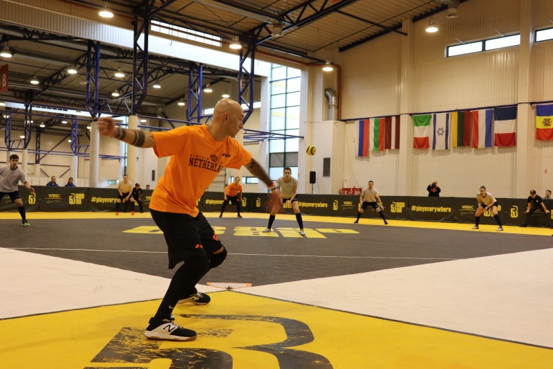 Campo: El espacio de juego mide 18x18 metros, similar a un campo de fútbol pequeño, con bases en las esquinas formando un cuadrado.